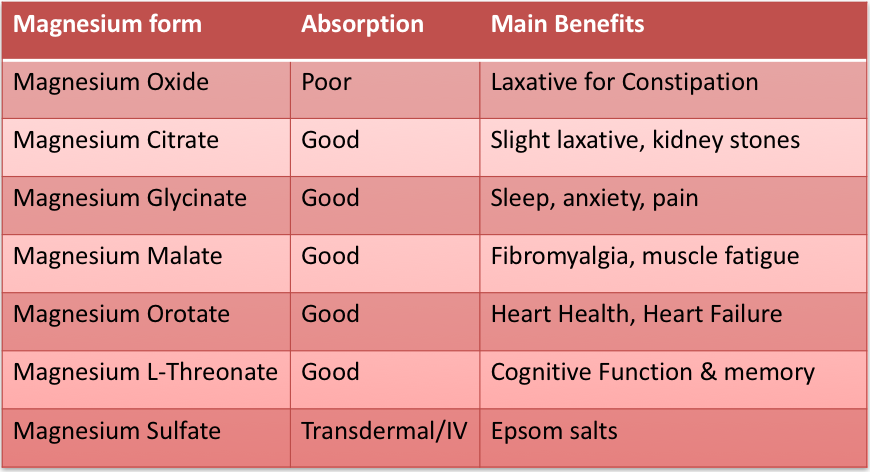 Magnesium comes in all kinds of forms, as you can see in the image below. To specifically remedy constipation I recommend the oxide form. This is not absorbed by your body but does make your stool softer. It is still necessary to use the easily absorbable forms of magnesium to prevent the keto flu.